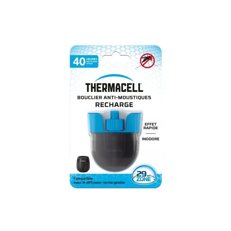 La Recharge liquide pour Bouclier anti-moustiques Thermacell est spécialement conçue pour être utilisée avec le diffuseur Thermacell. Cette recharge liquide libère des composés actifs qui créent une barrière efficace contre les piqûres de moustiques, offrant une protection optimale lorsqu'elle est insérée dans le diffuseur.