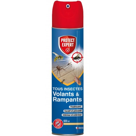Le foudroyant Volants & Rampants Protect Expert est un insecticide ménager à spectre large, à la fois efficace sur les insectes volants et les insectes rampants tels que les cafards, blattes, araignées, puces, mouches, moustiques tigres et guêpes.