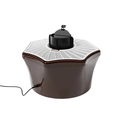 Un unique ventilateur aspire les moustiques vers un sac de capture situé sous l'entrée d'air noire du piège. Ensuite, le flux d'air est dévié et sort du piège par le couvercle blanc, reproduisant ainsi les convections d'air générées autour d'un corps humain.