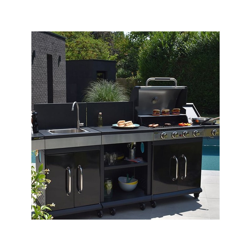 Quant à l'évier, il vous sera d'une grande aide pour laver vos aliments, vos plats ou vos mains, pendant que vous préparerez vos repas dehors. Après avoir fixé ces deux modules à votre barbecue, vous pourrez profiter d'une véritable cuisine d'extérieur, capable de recevoir jusqu'à 10 convives !