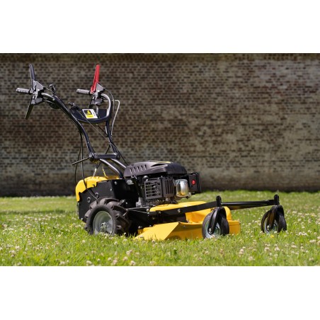 La faucheuse à 4 roues RL210H est destinée aux herbes hautes et denses, et s’adapte à tous les terrains grâce à leurs roues arrière-profil agraires qui permet de travailler dans des terrains accidentés plus facilement.