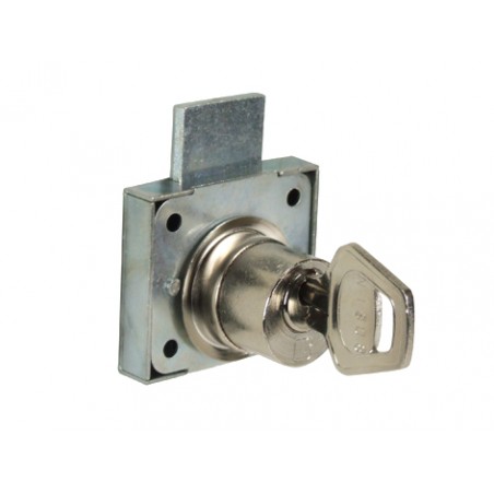 SERRURE MEUBLE A CYLINDRE-4 GOUPILLES-2 CLES ROSAC PR FERMET FACAD TIROIR EP 19MM MAXI A VISSER-PERCAGE CYLIND D20 LG MM 35 HT MM 40 EP MM 19 Ø MM 20 AXE DE LA CLE 20 ACIER ZING