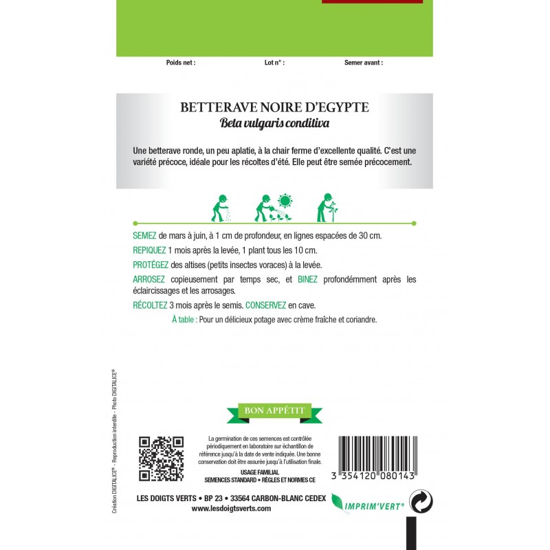 BETTERAVE NOIRE D'EGYPTE - SACHET ÉCO - CATÉGORIE 3 - LES DOIGTS VERTS