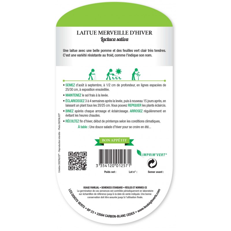 Une laitue avec une belle pomme et des feuilles vert clair très tendres. C’est une variété résistante au froid, comme l’indique son nom.