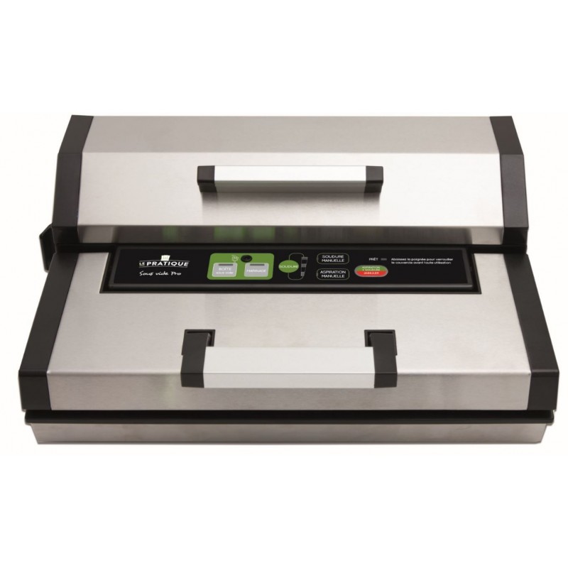 Panneau de commande avec touche tactile multifonctions 3 niveaux de soudure 2 niveaux de vide (utilisation manuelle ou automatique). Fonction marinade (en 5 minutes) : L'appareil génère des aspirations progressives et des phases de poses pour permettre aux aliments de s'imbiber. Idéal pour emballer et conserver les aliments pendant plusieurs jours, semaines ou mois. Vendue avec 10 sacs 22x30cm ; 1 rouleau 30x600cm et un coupe sac.