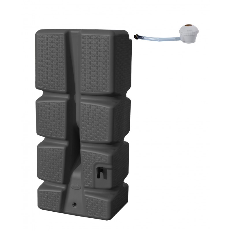 - Robinet (livré non monté), pré-perçage pour bouchon de vidange (non fourni), bouchon sur le dessus de la cuve, raccordement chéneaux et / ou jumelage de cuves pré percé, accrochage mural pré percé.