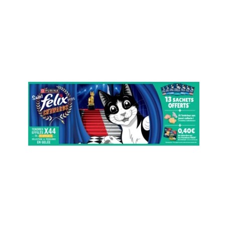 ALIMENT HUMIDE CHAT TENDRES EFFILES GELEE POISSONS 44X85G - FELIX