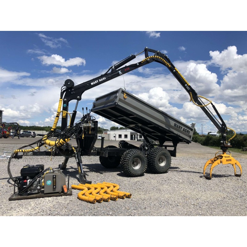 REMORQUE FORESTIERE 1,5 T AVEC GRUE 3,3M - MARY AGRI