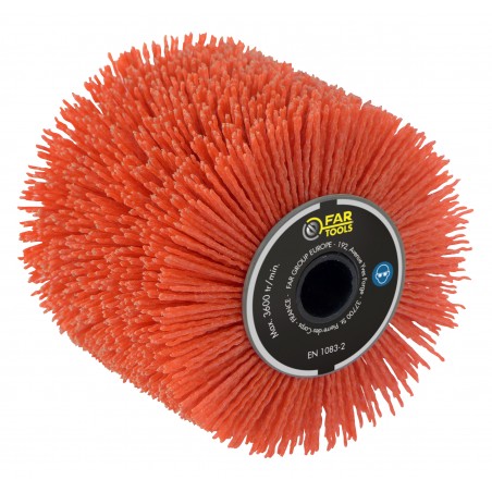 Brosse nylon abrasif - Préconisation dégrisage ou nettoyage abrasif sur tous types de surfaces, planes et irrégulières, et tout type de matériaux, bois, pierre, métal (Diamètre 120mm, Largeur 100mm)
