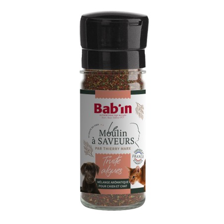 Mode d’emploi : Aliment complémentaire pour chien et chat. Friandise à offrir et à distribuer à sec sur l’alimentation de votre animal (croquette, terrine, ration ménagère). Toujours laisser de l’eau propre et fraîche à disposition. Produit pour animaux uniquement. Conserver dans un endroit frais et sec, à l’abri du soleil. Refermer le moulin après chaque utilisation.