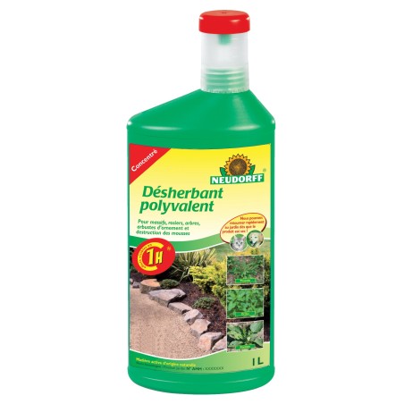 Herbicide de contact qui élimine les mauvaises herbes des jardins et massifs. Action rapide: effet visible en 1h par des températures supérieures ou égales à 25°C et par temps sec. Efficace à basse température: dès 10°C. Dose d’emploi : 166 ml/L de solution. Méthode Application Utilisation: Bien secouer avant utilisation ! Les mauvaises herbes doivent être sèches avant le traitement. Pour garantir une efficacité maximum, traiter abondamment toutes les faces de la plante. Pour un traitement sur quelques plantes : pulvériser 100 ml/m² de mauvaises herbes. Renouvellement du traitement : S’il y a repousse des mauvaises herbes, traiter à nouveau, maximum deux applications. Délai de ré-entrée : il est possible pour les hommes et les animaux de compagnie de retourner sur les parcelles traitées dès que la préparation pulvérisée a séché.