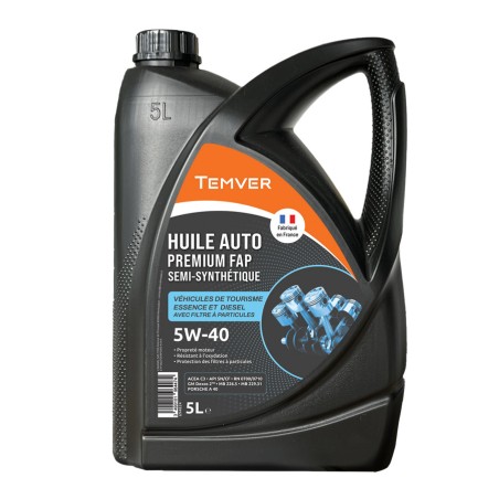 TEMVER 4T PREMIUM FAP 5W40 est une huile semi-synthétique à très hautes performances, spécialement formulée pour lubrifier les moteurs diesel de véhicules légers avec filtre à particules.