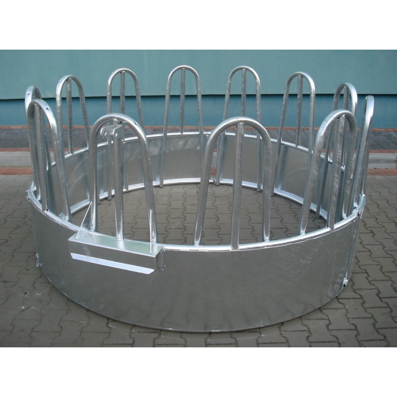 La structure du râtelier galvanisé, destiné aux bovins et équins, a été créée conformément aux normes en vigueur en matière de bien-être des animaux. Le râtelier pour bovins assure une très bonne résistance à la corrosion, ce qui prolonge sa durée de vie utile. Notre râtelier galvanisé garantit un bon accès des animaux à la nourriture et limite les pertes lors de l'alimentation. La construction du râtelier pour bovins empêche les animaux de se battre pour la nourriture. Le râtelier pour équins est composé d'éléments compacts, facilement assemblés à l'aide de vis et écrous. La structure circulaire du râtelier pour équins et bovins permet de le déplacer facilement sur le pâturage : il peut être renversé et roulé. Grâce à notre produit, vous pouvez augmenter l'hygiène sur le poste d'alimentation, vous réduisez à zéro la possibilité de contamination de la nourriture et vous consacrez moins de temps au nettoyage du poste d'alimentation.$