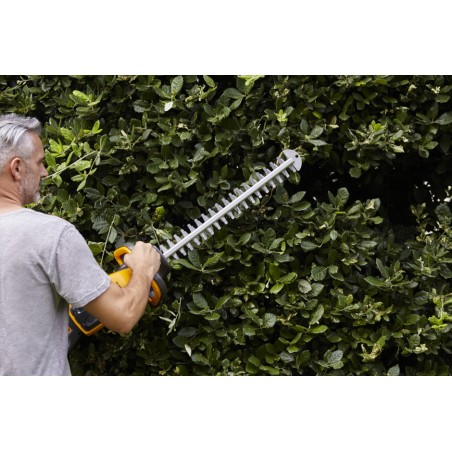 Puissance et précision : une combinaison parfaite pour ce taille-haies sans fil Alimenté par une batterie 48 V 2 Ah, le taille-haies SHT 500 vous offre une autonomie de 50 minutes avec une seule charge, pour un travail à faibles vibrations, faible bruit et zéro émission. Grâce à sa lame double de 58 cm en acier trempé et à sa poignée pivotante de 180º, vous pourrez tailler facilement tous types de haies, d'arbustes et de branchages.