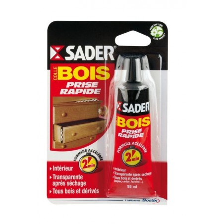 La colle spéciale BOIS PRISE RAPIDE SADER® est une colle blanche vinylique pour l'assemblage et le placage en intérieur de tous types de bois et leurs dérivés : Bois tendres, durs, exotiques, agglomérés, contreplaqués, lamifiés, stratifiés... Sans solvant, elle est recommandée pour tous les travaux de réparation ou de montage de meuble. Convient également pour petits collages : papier, carton, feutrine...
