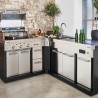 Avec notre cuisine d'extérieure Ultimate, non seulement vous déplacez votre univers de cuisine en extérieur, mais vous créez un nouvel espace convivial dans votre jardin. La cuisine Ultimate est composée d'éléments parfaits pour l'extérieur. Polyvalent, fonctionnel, de conception haut de gamme, cet ensemble ne manquera pas de vous séduire. Le module d’angle conçu en acier robuste avec un plateau en granit gris, apporte une surface de travail supplémentaire. L’intérieur du module offre un espace de rangement supplémentaire, accessible par deux grandes portes arrières en acier. Ce caisson d'extension permet de combiner les deux autres modules Cuisson et Entertainement pour créer une unique cuisine d’angle.
