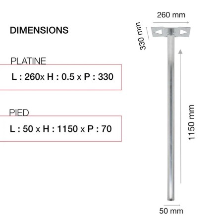 - Livré avec une large platine de fixation de 330x260mm garantissant une stabilité parfaite de la boite aux lettres Renz sur le pied.