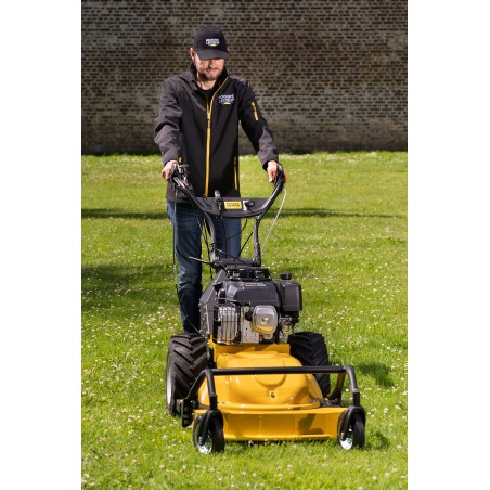 Sa largeur de coupe est de 60 cm, et la hauteur de coupe est réglable de 5 à 11 cm.  C’est une éjection arrière, les projections sont uniquement sur zone travaillée. La faucheuse à 4 roues RECATO GATOR vous permettra un travail en toute sécurité et confortable pour des terrains allant jusqu’à 6000m².
