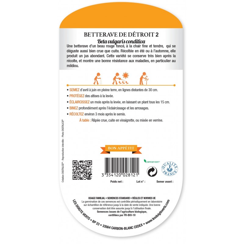 BETTERAVE DE DÉTROIT 2 BIO - CATÉGORIE 2 - LES DOIGTS VERTS