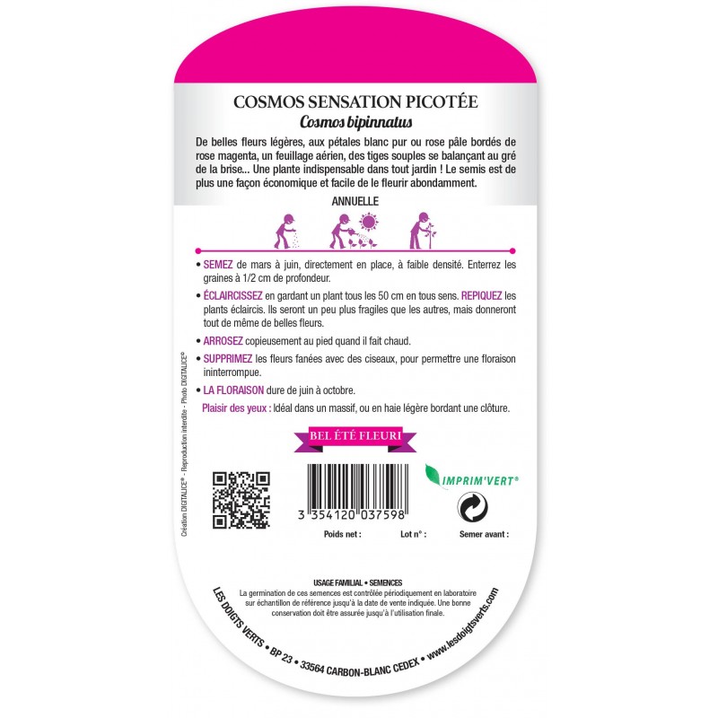 COSMOS SENSATION PICOTÉE - CATÉGORIE 3 - LES DOIGTS VERTS