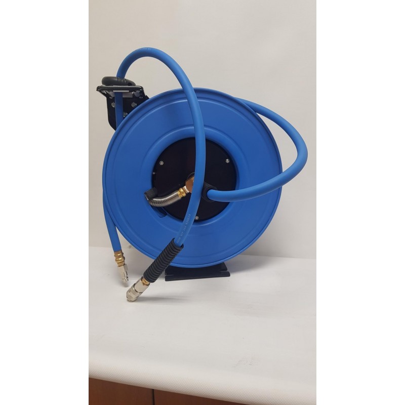 Auto-enroulant, en métal robuste et équipé d'un tuyau pour air comprimé longueur 15 m, Ø intérieur 9.3 mm.