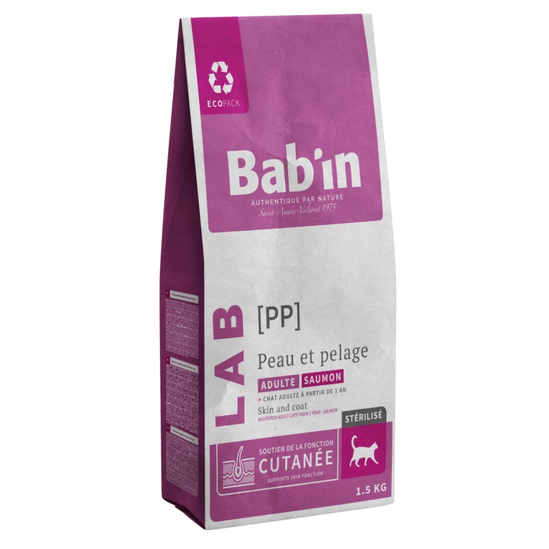 CROQUETTES LAB CHAT STÉRILISÉ ADULTE PEAU & PELAGE 1.5KG - BAB'IN