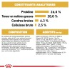 Additifs nutritionnels : Vitamine A : 28800 UI, Vitamine D3 : 800 UI, Taurine : 2,5 g, Fer (3b103) : 67 mg, Iode (3b201, 3b202) : 5,6 mg, Cuivre (3b405, 3b406) : 14 mg, Manganèse (3b502, 3b504) : 70 mg, Zinc (3b603, 3b605, 3b606) : 138 mg, S élénium (3b801, 3b811, 3b812) : 0,18 mg - Additifs technologiques : Clinoptilolite d’origine sédimentaire : 10 g - Conservateurs - Antioxygènes.