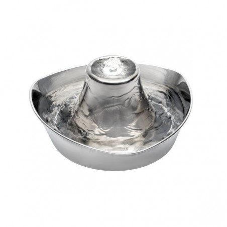 La fontaine Seaside a une capacité en eau de 1.8L, ce qui convient parfaitement à un chat ou un petit chien. La conception silencieuse de la fontainegénère un léger frémissement de l'eau sur la tour inoxydable (par opposition à un flux à écoulement libre), ce qui permet aux animaux peureux ou timides de s'approcher sans crainte de la fontaine. La fontaine utilise une pompe, un filtre à charbon et un autre en mousse qui fonctionnent ensemble pour éliminer les poils, la salive et les goûts désagréables de l'eau, de sorte qu'ils ont toujours de l'eau propre à boire. La fontaine en acier inoxydable est fabriquée avec des matériaux de qualité sans BPA, hygiéniques et résistants à la rouille et aux rayures. Le nettoyage de la fontaine est facile et pratique : la tour inoxydable et son bol se placent dans le panier haut du lave-vaisselle et la pompe se nettoie à la main.