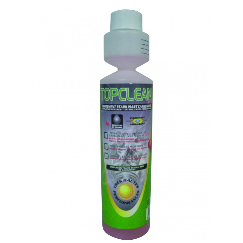 TOP CLEAN €10 permet l’utilisation du carburant sans Plomb dans les matériels fonctionnant au Super.