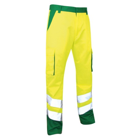 Caractéristiques : Ceinture 5 passants - braguette zippée - 2 poches italiennes - 2 poches cuisses - 1 poche dos - bandes rétroréfléchissantes de 7 cm de largeur