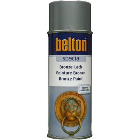 Bombe de Peinture aérosol Belton aspect bronze de style antique, couleur argent. Confère aux surfaces lisses un aspect antique plus brut. Effet décoratif unique en son genre. Utilisable en intérieur ou extérieur.