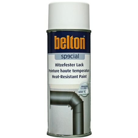 Bombe de Peinture aérosol Belton hautes températures. Conçue pour résister à des températures jusqu'à 650°C. Idéal pour la mise en peinture d'éléments soumis à fortes températures comme les conduits de poêles et chaudières, inserts et cheminées ou pots d'échappement de véhicules.