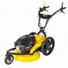 La faucheuse à trois roues RL2008EC est destinée aux herbes hautes et denses, et s’adapte à tous les terrains grâce à sa roue avant pivotante et blocable, et ses grandes roues arrière métalliques.