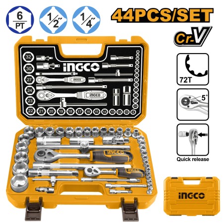 COFFRET CLÉ À DOUILLE 44 PIÈCES 1/4" ET 1/2" - INGCO
