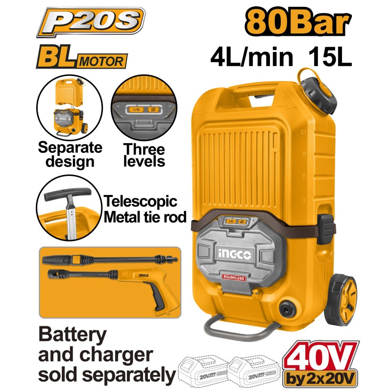 NETTOYEUR HAUTE PRESSION 80B 15L - VENDU NU - INGCO