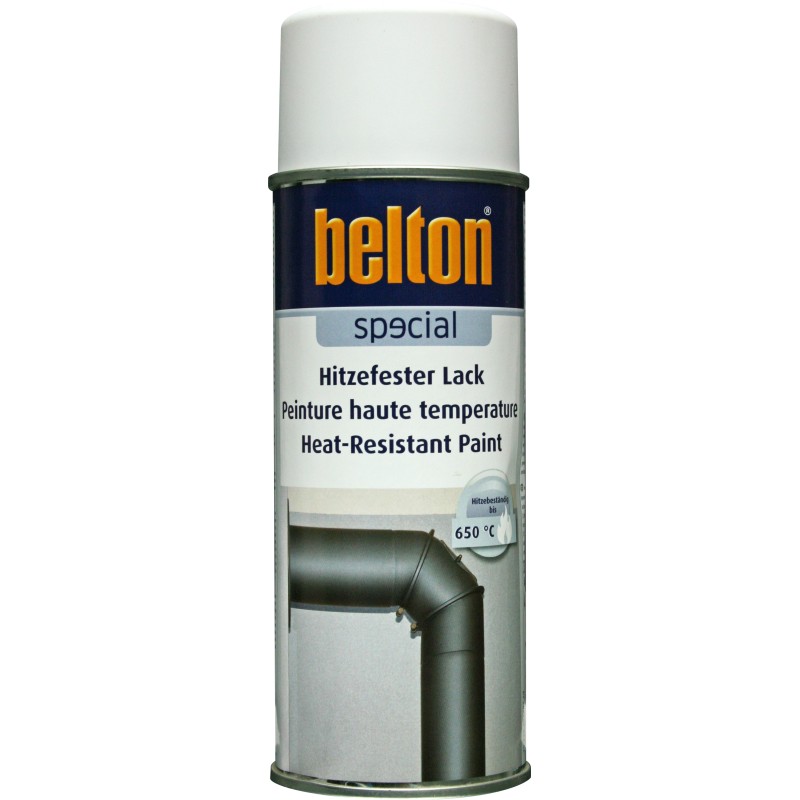 Bombe de Peinture aérosol Belton hautes températures. Conçue pour résister à des températures jusqu'à 650°C. Idéal pour la mise en peinture d'éléments soumis à fortes températures comme les conduits de poêles et chaudières, inserts et cheminées ou pots d'échappement de véhicules.