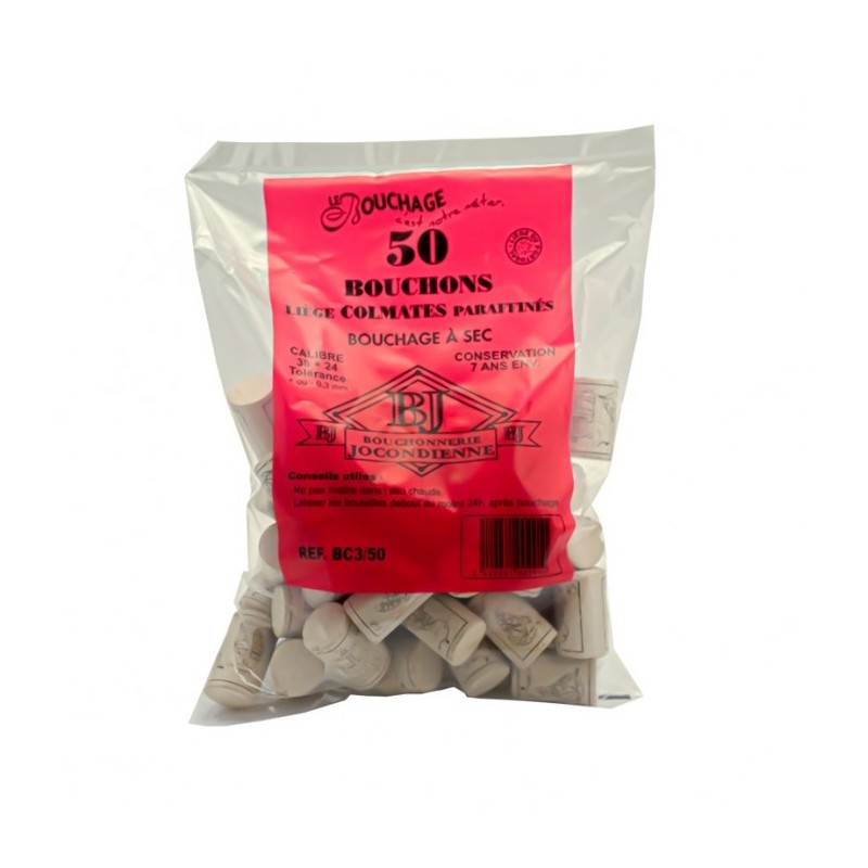 50 bouchons en liège colmatés paraffinés pour bouchage à sec.