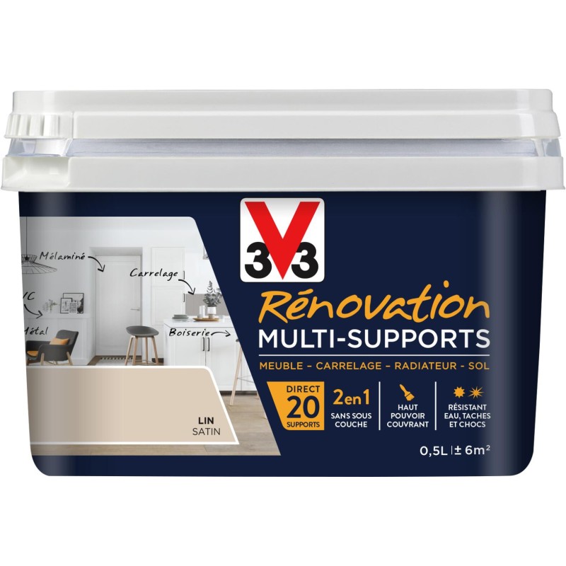 La peinture Rénovation Multisupport de V33 a été spécialement développée pour rénover toutes les surfaces, dans toutes les pièces de la maison (séjour, chambre, entrée, cuisine, salle de bain).