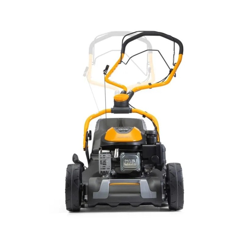 La tondeuse automotrice STIGA Combi 753 S dispose d'une largeur de coupe de 51 cm et d'un collecteur d'herbe hybride de 60 litres avec indicateur de sac plein. Le châssis en acier abrite un moteur STIGA fiable de 166 cm3 d'une puissance nette de 2,60 kW à 2900 tr/min. Le Combi 753 S te permet de choisir entre 4 fonctions d'éjection différentes : éjection arrière, éjection latérale, ramassage ou mulching, qui broie finement les herbes coupées et les répartit sur la pelouse comme un épandeur naturel. La hauteur de coupe centralisée se règle facilement à l'aide d'un levier sur 6 positions allant de 22 à 80 mm. Les grandes roues arrière facilitent les manœuvres sur les terrains accidentés. Déflecteur latéral et obturateur mulching inclus.
