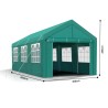 Tissu PE imperméable 140 g/m². Portes zippées et fenêtres enroulables. Protège du vent, de la pluie, des rayons UV. Avec 1 ensemble de cadre en acier, 2 couvertures de toit, 4 parois latérales (2 avec fenêtre + 2 avec fermeture éclair), 8 ensemble de piquets et de cordes. Tubes Ø 38 mm.