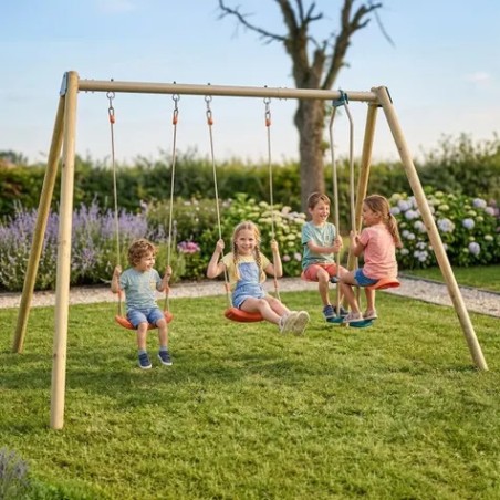 - Équipé de 2 balançoires soufflées, réglables par mousquetons.