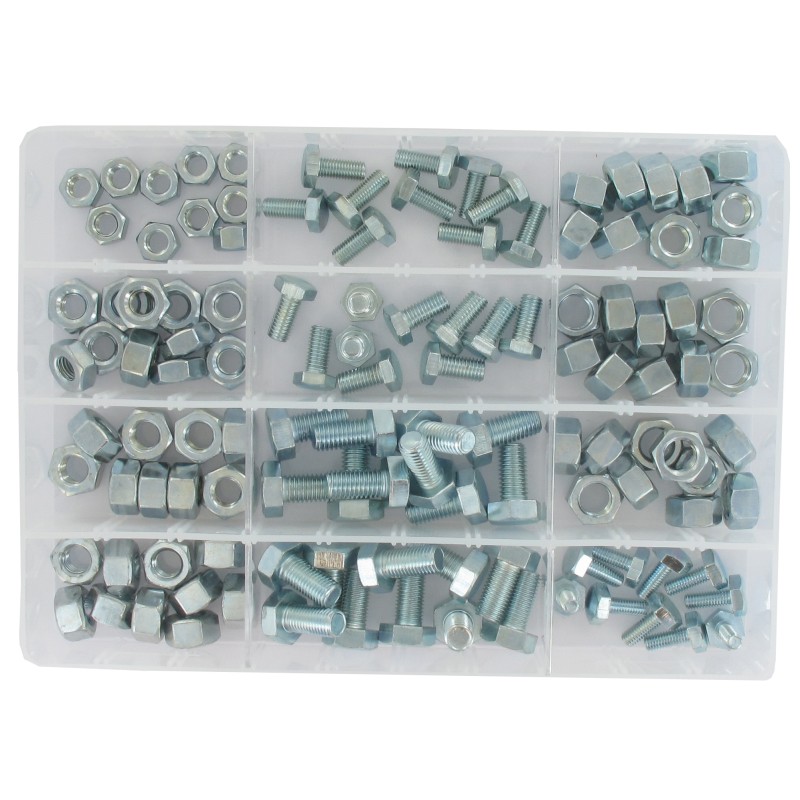 Coffret de 120 vis et écrous pour renvoi d'angle et flexible de débroussailleuses.