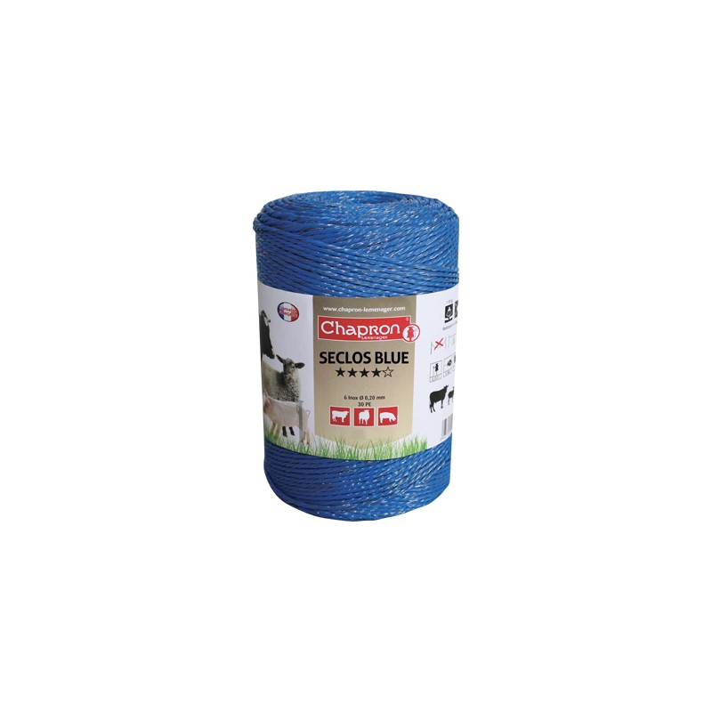 Bobine de 1000m de cordon de clôture électrique bleu.