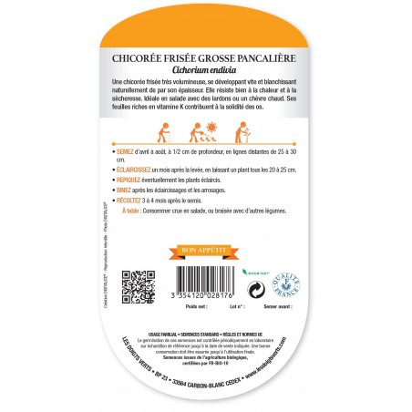 CHICORÉE FRISÉE PANCALIÈRE BIO - CATÉGORIE 2