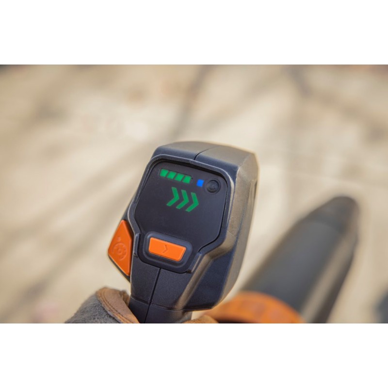 Gestion optimale de l’énergie : Activable en maintenant enfoncée la gâchette de commande, la fonction BOOST permet d’atteindre la puissance d’aspiration maximale de l’appareil. Pour les applications requérant moins d’effort, la force de soufflage peut être réglée en continu sur 4 niveaux (niveaux 1 à 3 et boost continu) pendant le travail pour s’adapter à l’application en cours et optimiser l’autonomie de la batterie.