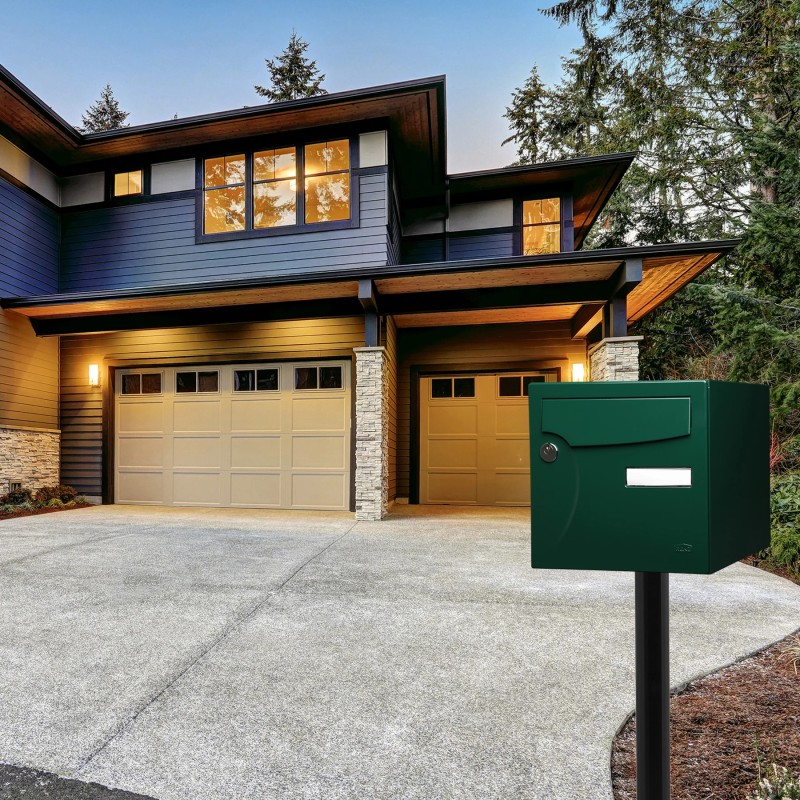 - Livré avec une large platine de fixation de 330x260mm garantissant une stabilité parfaite de la boite aux lettres Renz sur le pied