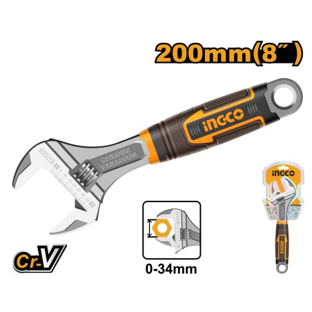 CLÉ À MOLETTE 200MM BI-MATIÈRE - INGCO