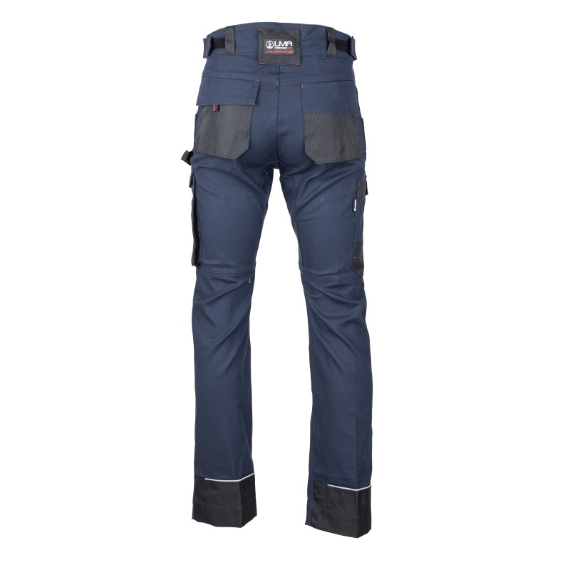 - Renforts bas de jambes au dos en Oxford avec insertion de passepoil rétroréfléchissant perforé