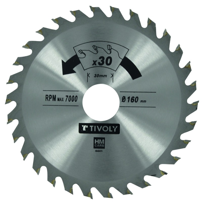 LAME DE SCIE CIRCULAIRE Ø160MM ALESAGE 20MM - 30DENTS - FINITION BOIS DUR, PARQUET, STRATIFIE - SCIE PORTATIVE - TIVOLY