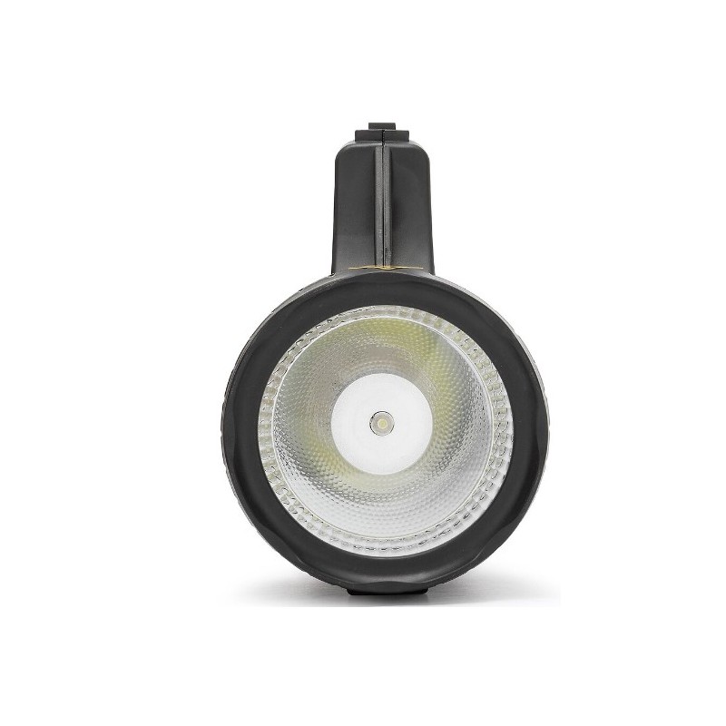 Phare LED rechargeable 3W avec chargeur maison (220v) et voiture (12V), équipé d'une batterie au plomb rechargeable 4v 2ah. Plus de 5 heures d'autonomie à pleine charge (lumière 50%. 2 heures si lumière 100%). Faisceau visible à 250 m, IP 20. Lumière focalisée, en plastique hyper-résistant. Puissant: 170 lumens grâce à la LED haute puissance 3w et au réflecteur hautes performances Velamp. Léger et toujours disponible: c'est un partenaire de la vie quotidienne. Peut être utilisé dans le garage, dans la cave, marcher dehors, laisser sortir le chien... Compact et résistant: en plastique PP très robuste. Pour la voiture, promenades, randonnées, camping, bricolage, pêche, chasse, excursions....